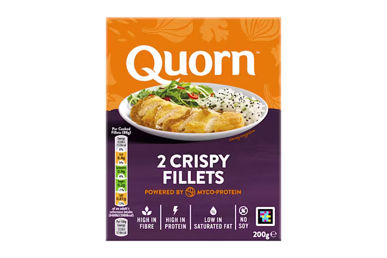 Mycoprotein (61%), Wheat Flour (Wheat Flour, Calcium Carbonate, Iron, Niacin & Thiamine), Rapeseed Oil, Water, Rehydrated Free Range Egg White, Wheat Semolina, Wheat Starch, Maize Flour, Milk Proteins, Natural Flavouring, Firming Agents: Calcium Chloride, Calcium Acetate; Dextrose, Salt, Gelling Agent: Pectin.