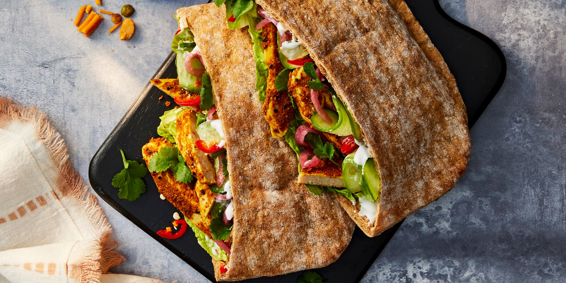 Try our NEW vegetarian chicken mini fillets, spiced with an aromatic Tikka flavour. They’re perfect for packing in wraps, layering in a sandwiches or serving wrapped in a fluffy naan or warm pitta pocket with a coconut dressing.