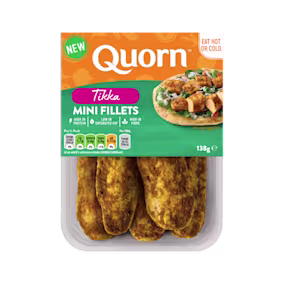 - Open each pitta pocket and fill with little gem leaves. Slice the Quorn Tikka Mini Fillets in half and divide between the pitta pockets. Add a couple of spoonful’s of cucumber salad.